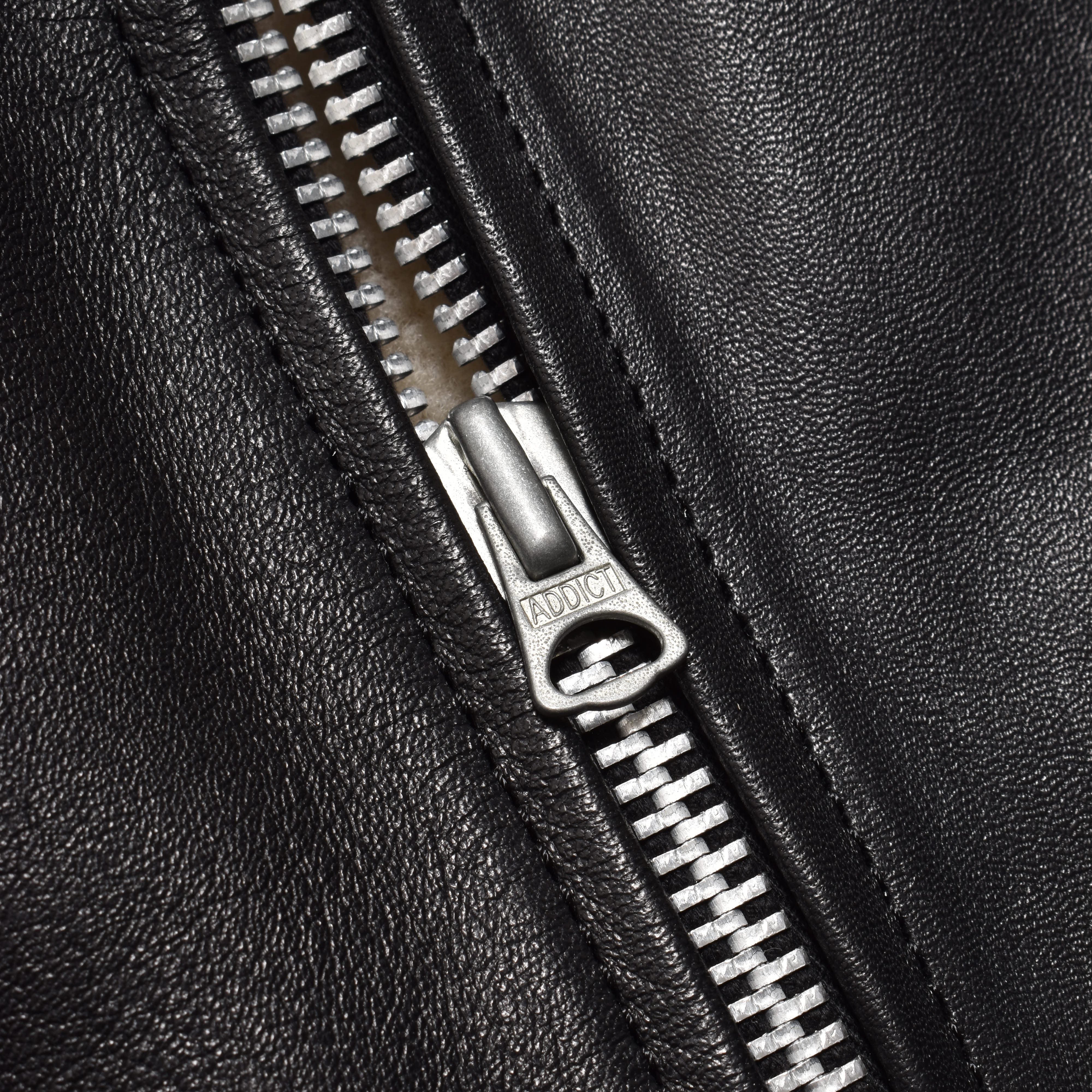 UKヴィンテージレザージャケットに対する造詣の深さと、拘り抜いた末にたどり着いた独自製作のレザーやジッパー、そして現代的かつオリジナルへのリスペクトが感じられるパターンメイキングで新しいレザージャケットを作り続ける孤高のブランド<ADDICT CLOTHES JAPAN>製。