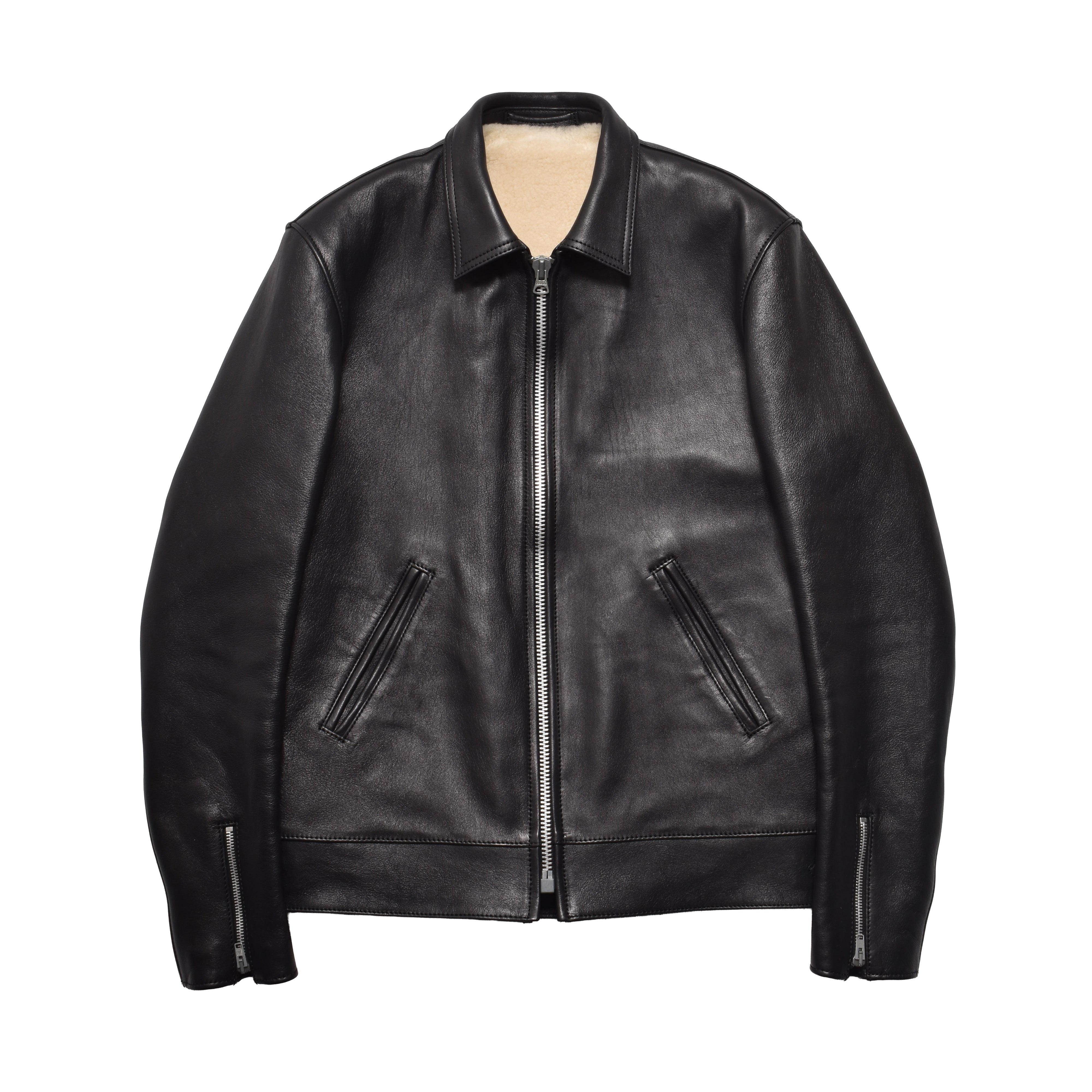 AD-01をベースに、表地に振るベジタブルタンニンのシープレザーを、裏側はムートンをライニングに据えたラグジュアリーかつ武骨なスタイルのジャケットは完全別注によるオリジナルデザイン。