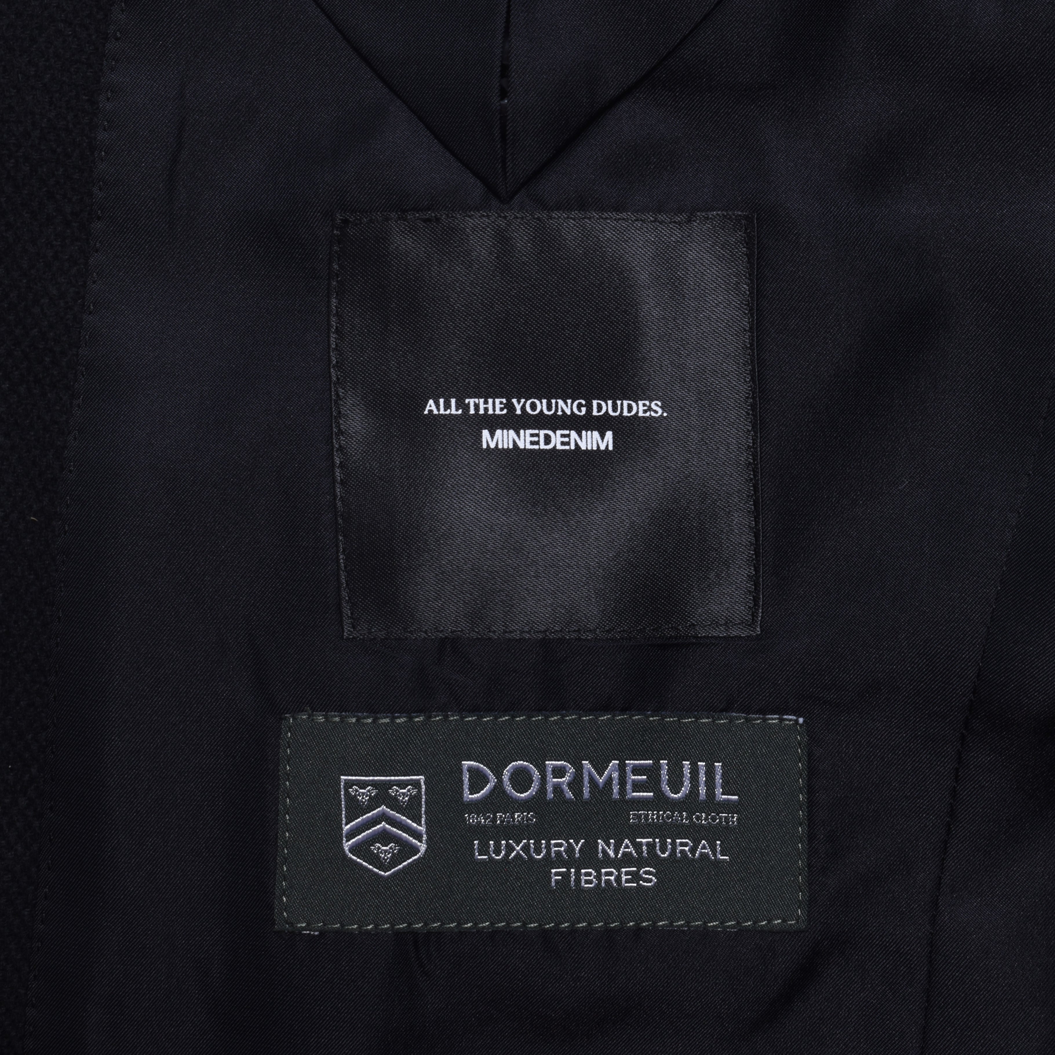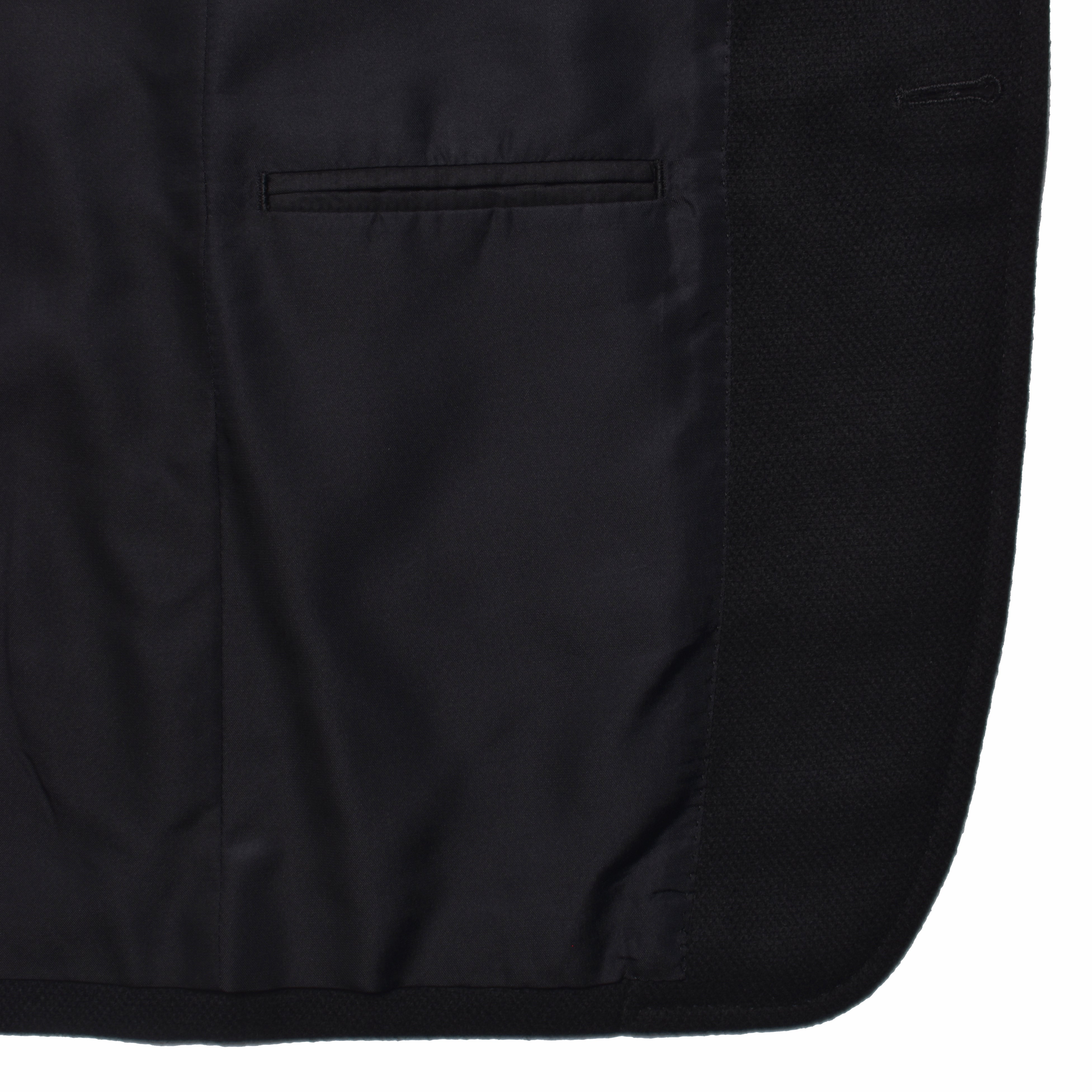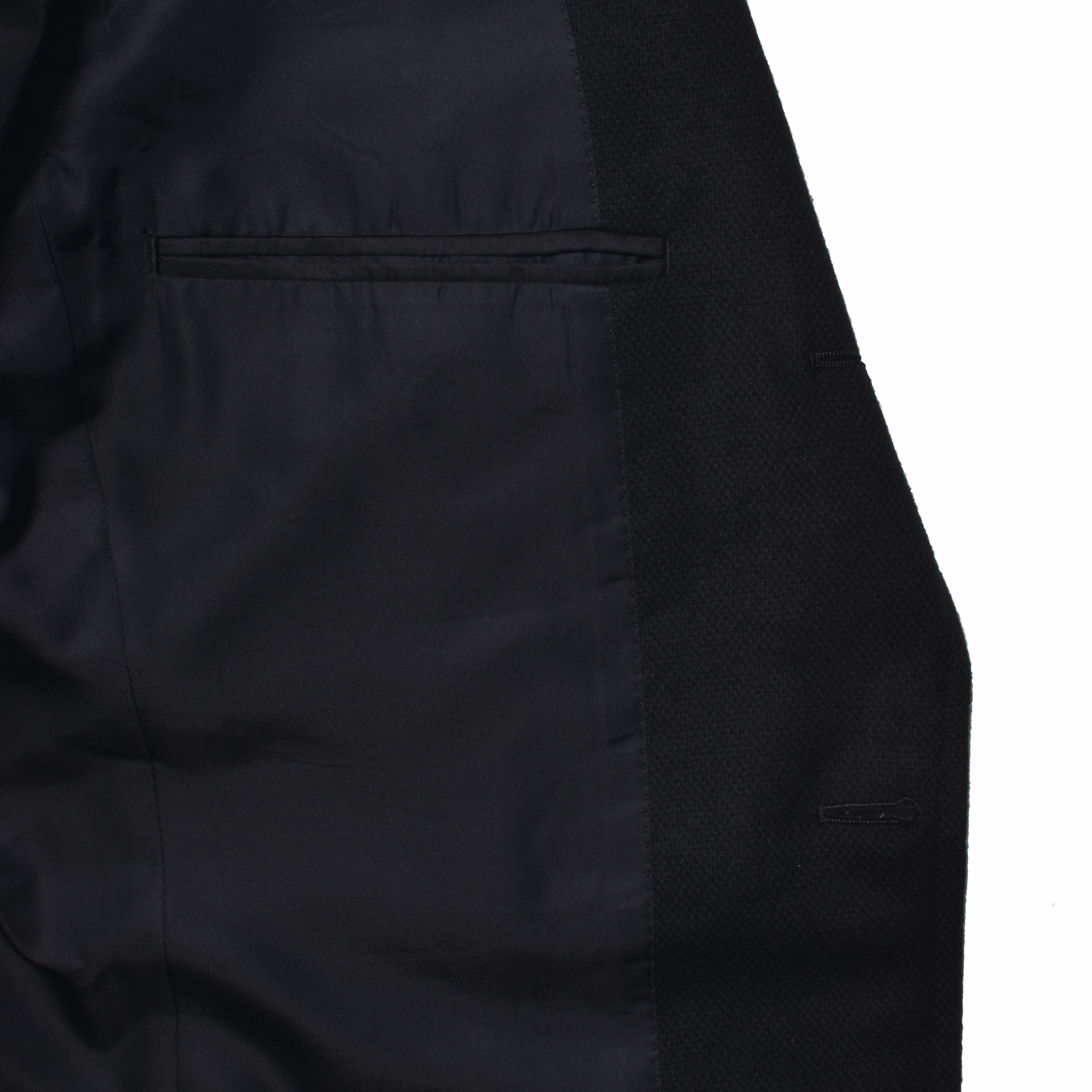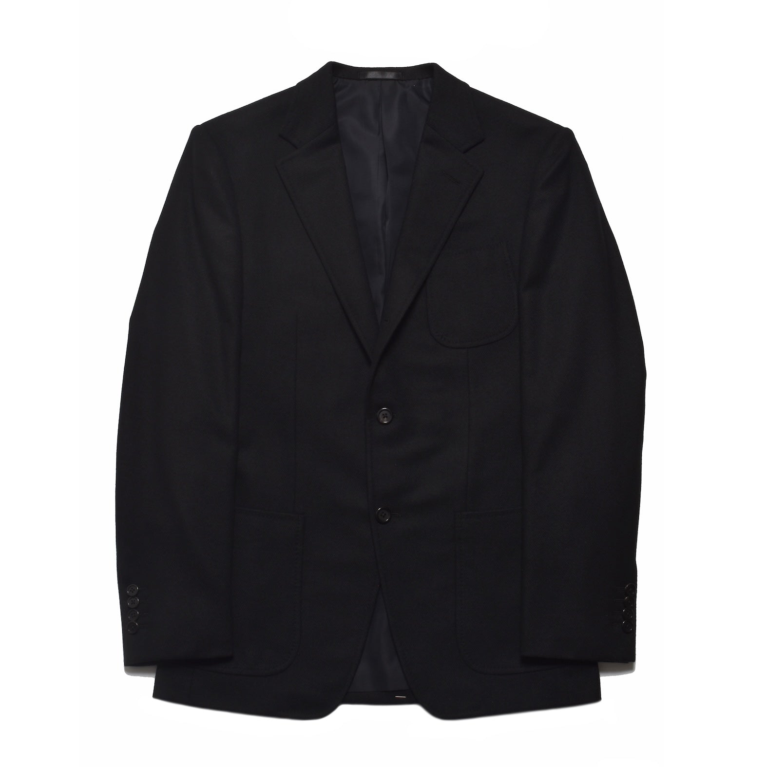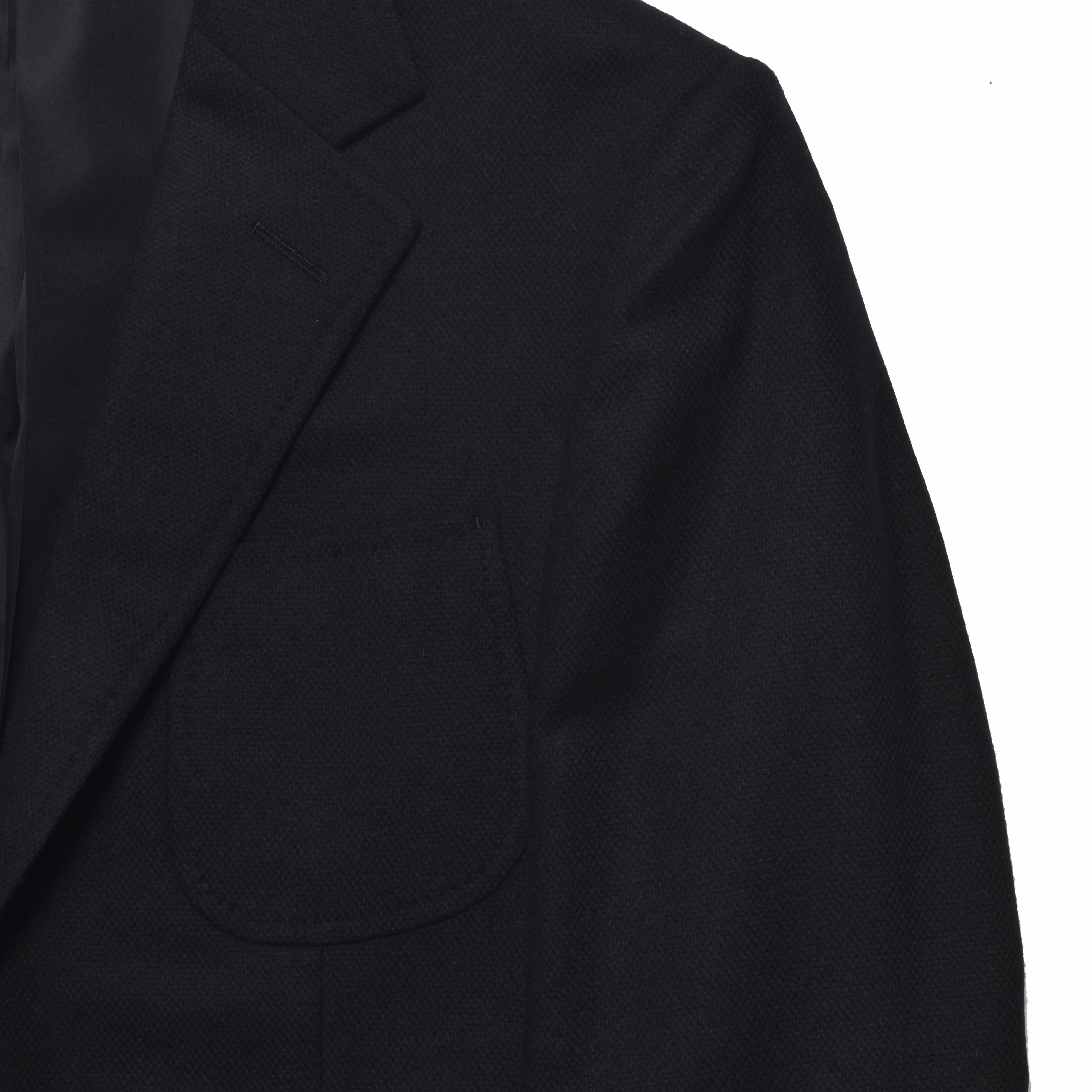 ・バスケット織りのブラックウールカシミヤを表地に採用。
