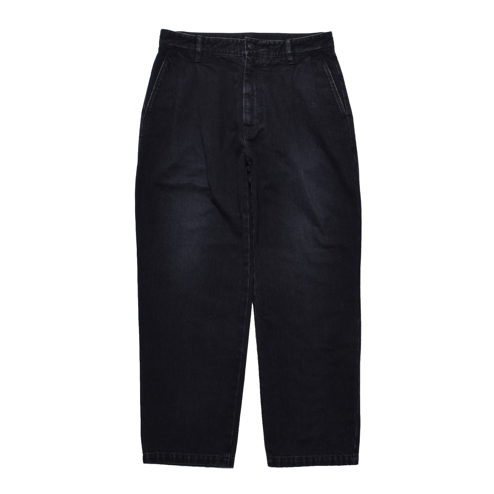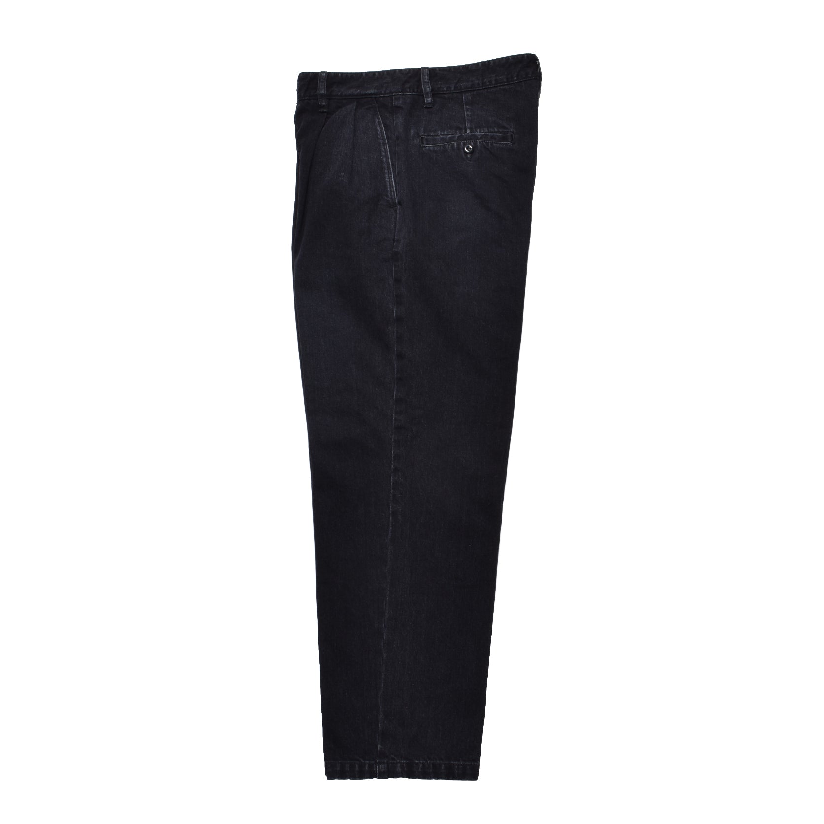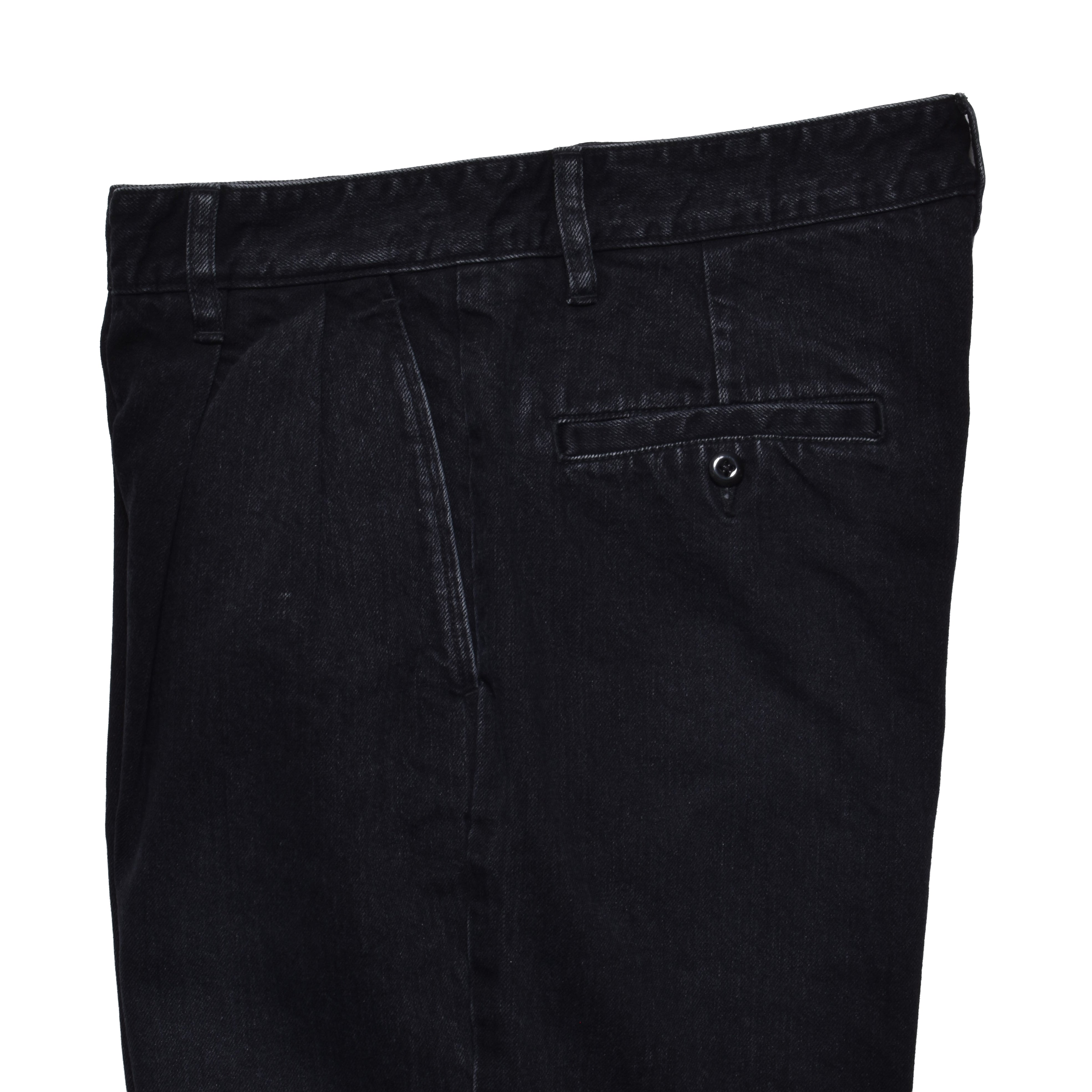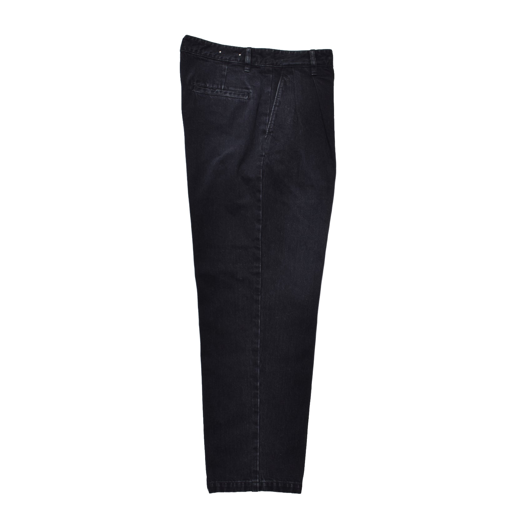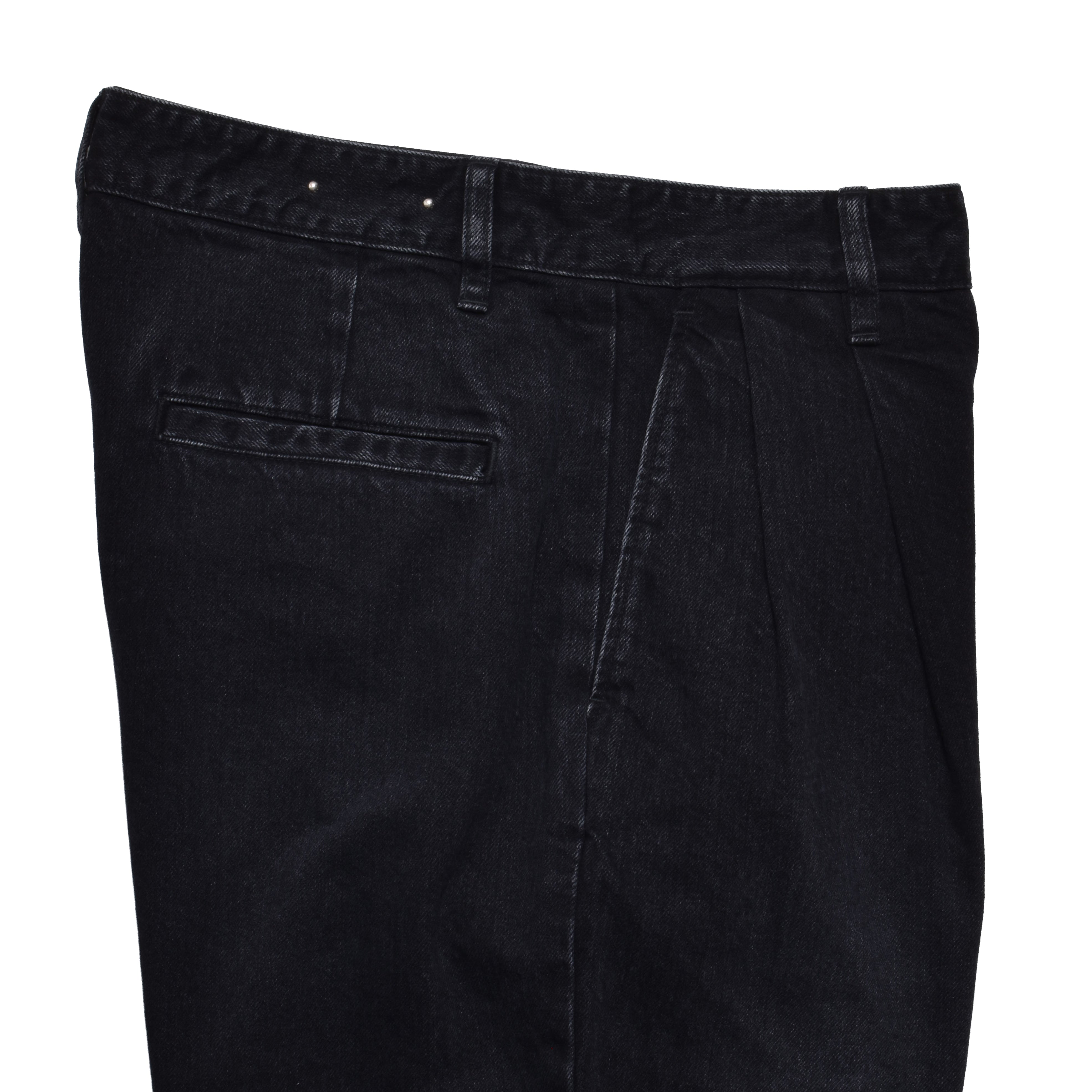 程よいハリと柔らかさを両立した、12ozのスタンダードデニムを使用したタックパンツ。