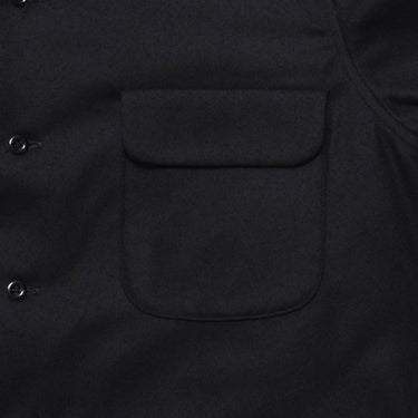 ・ワイドなボックスシルエットのダブルパッチアンドフラップポケット付きオープンカラーシャツ