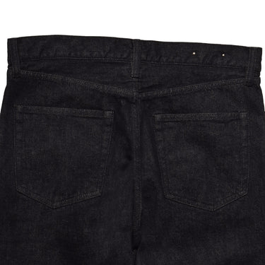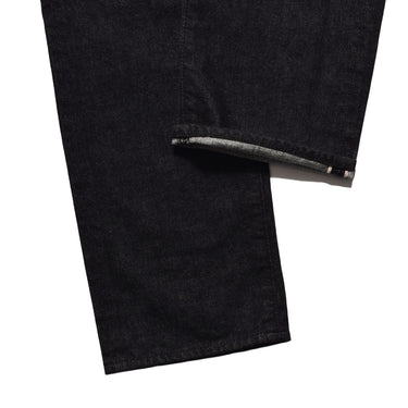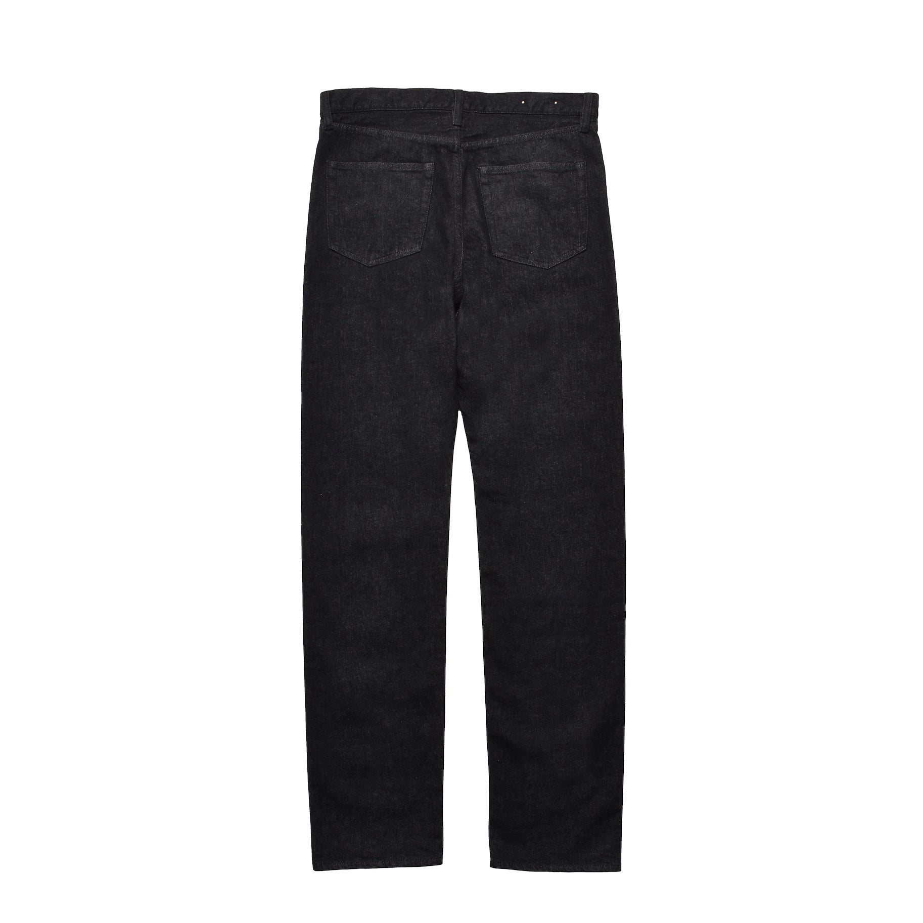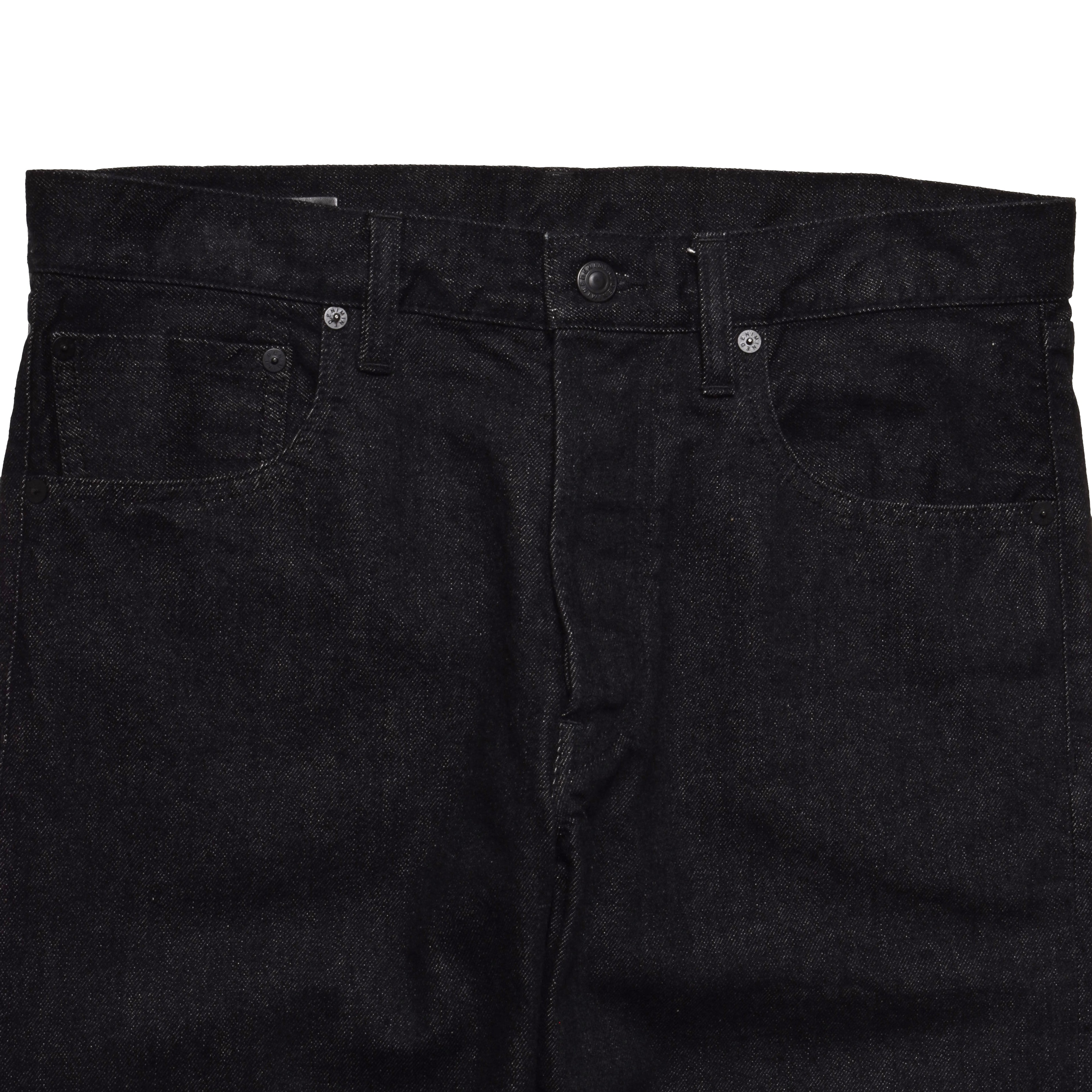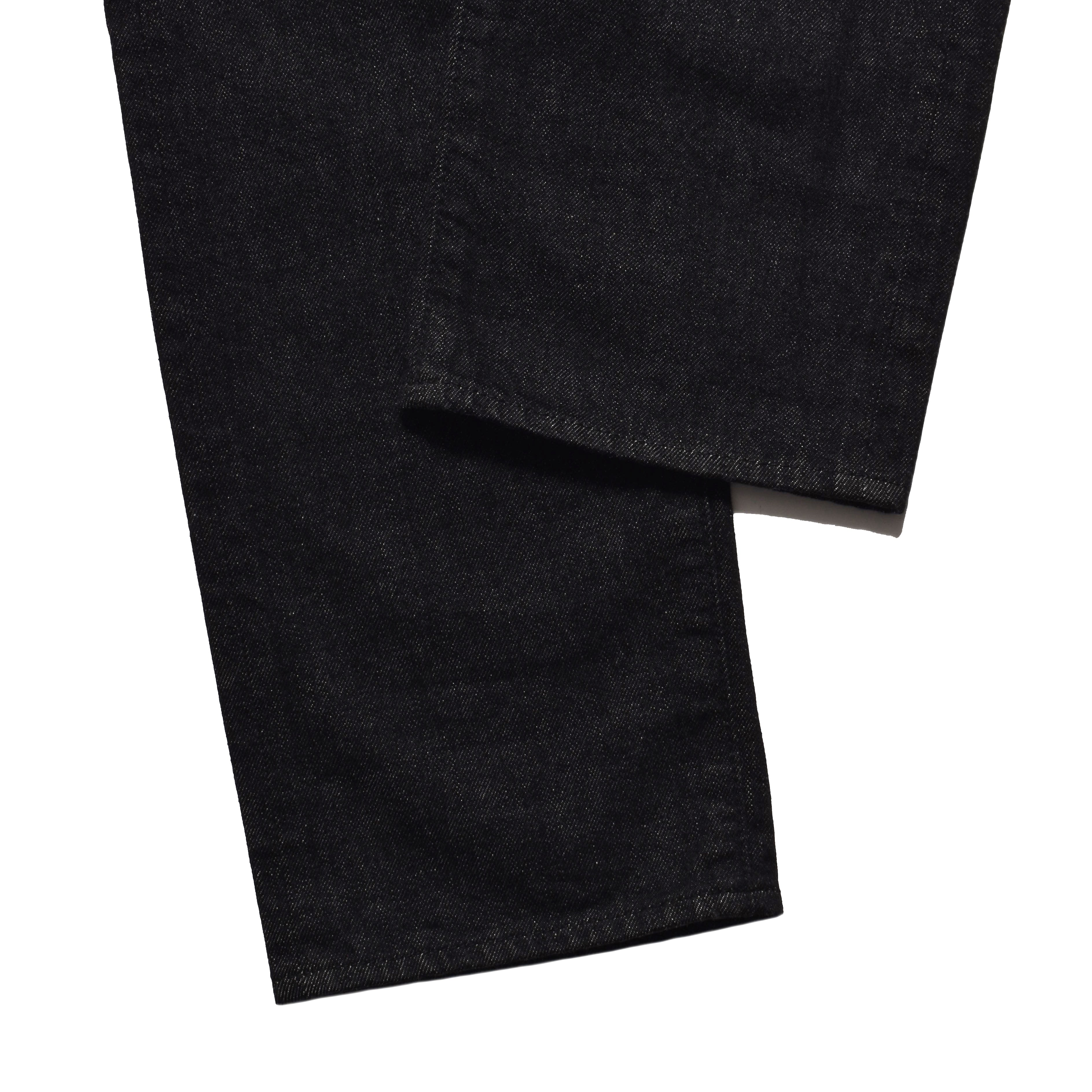 タテ糸がブラックロープ、ヨコ糸が生成のムラを抑えたリングストレートの14ozブラックセルヴィッジデニムを採用し、独自のウォッシュド加工で仕上げたスタンダードストレート5ポケットジーンズ。