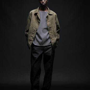 *こちらの製品は摩擦や水分などで他の衣類に色移りする場合がございますのでご注意ください。またリジッド(未加工)仕上げの為、着用や洗濯を繰り返す事により多少縮みや色落ちがあります。サイズを選ばれる際は少し大きめのサイズを選んでください。