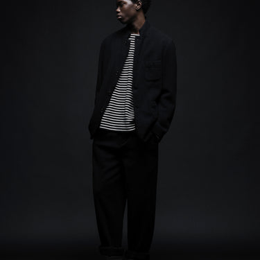 製品として仕立てた後に縮絨加工を施し、柔らかい風合いとシュリンクウール特有の質感を持たせている。