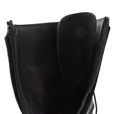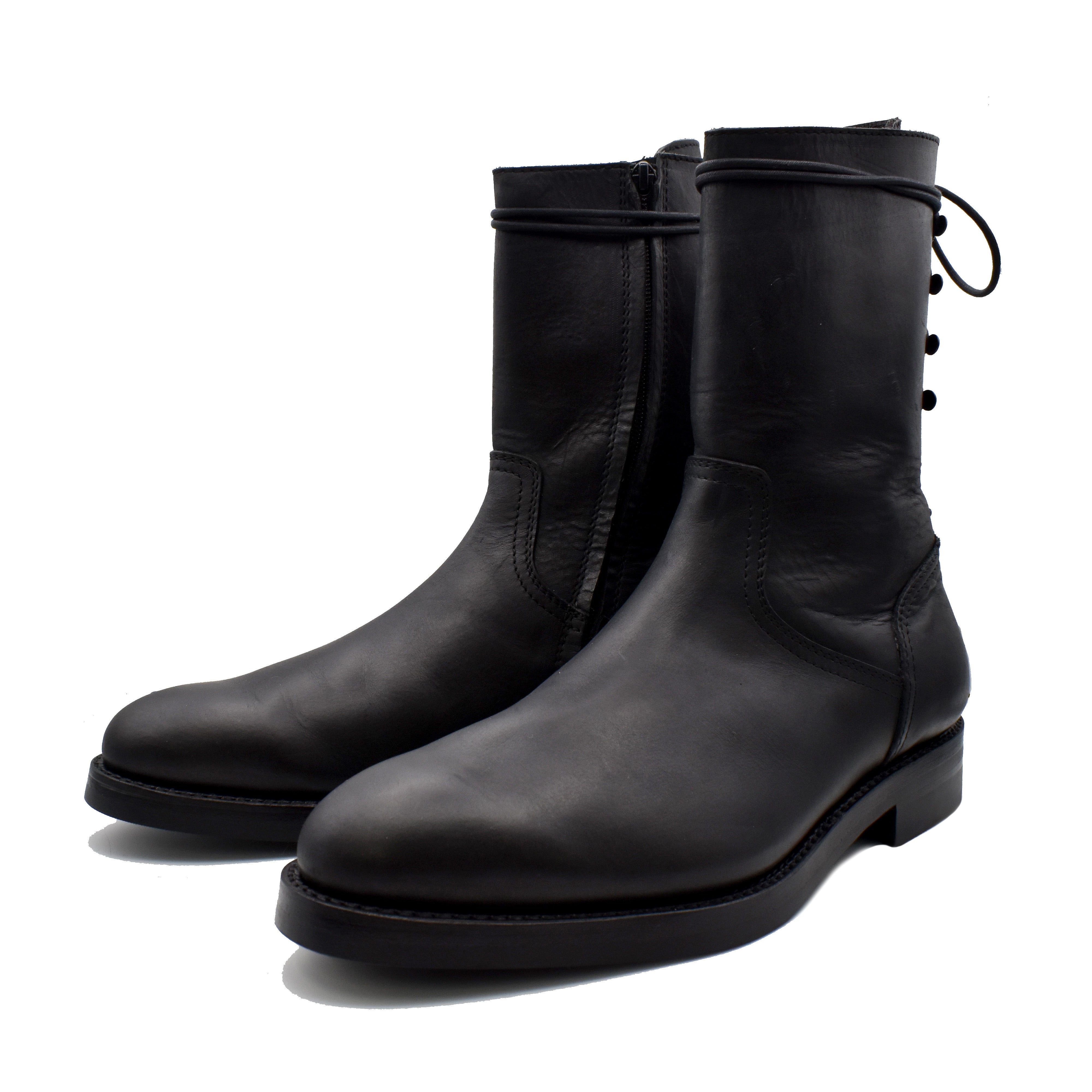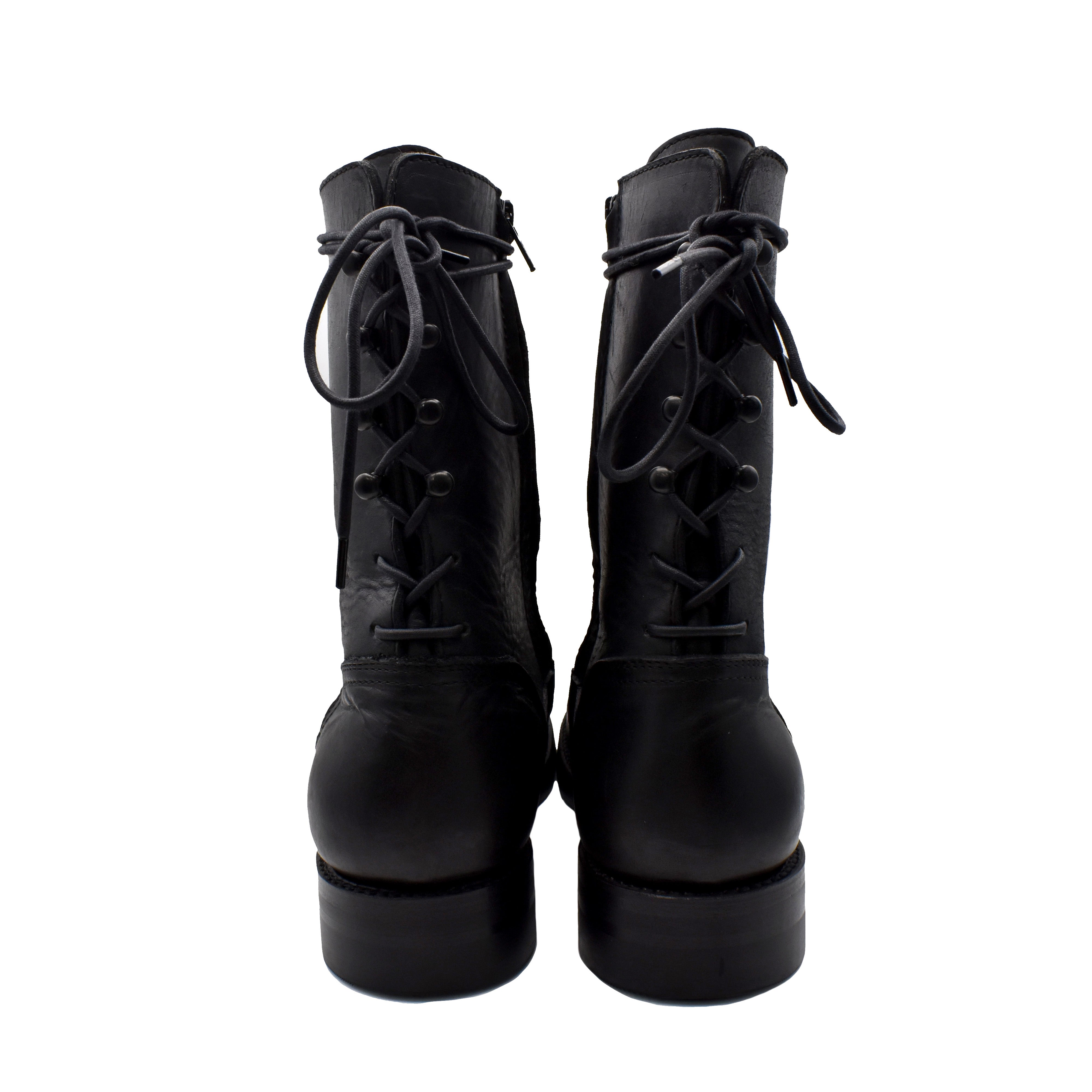 ・シャープなシルエットのバックレースアップコンバットブーツ