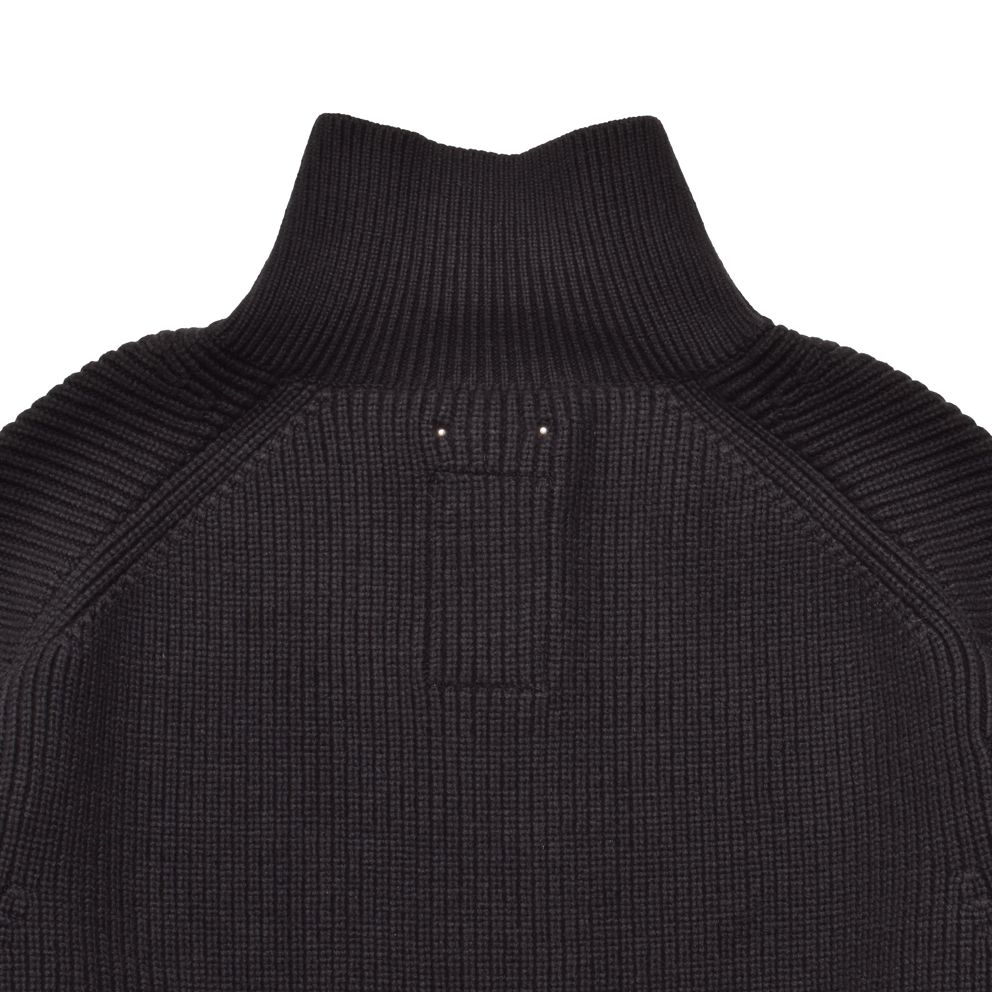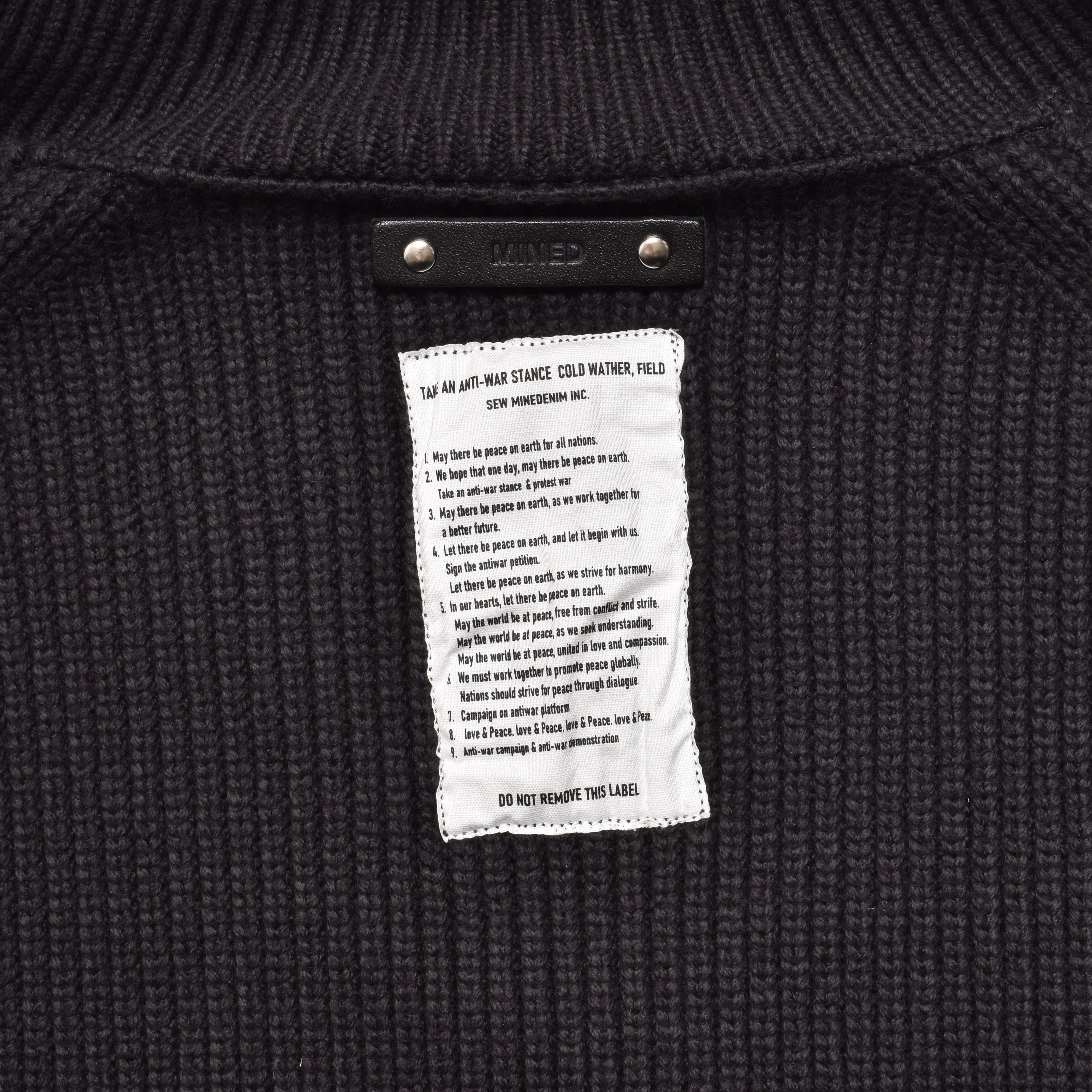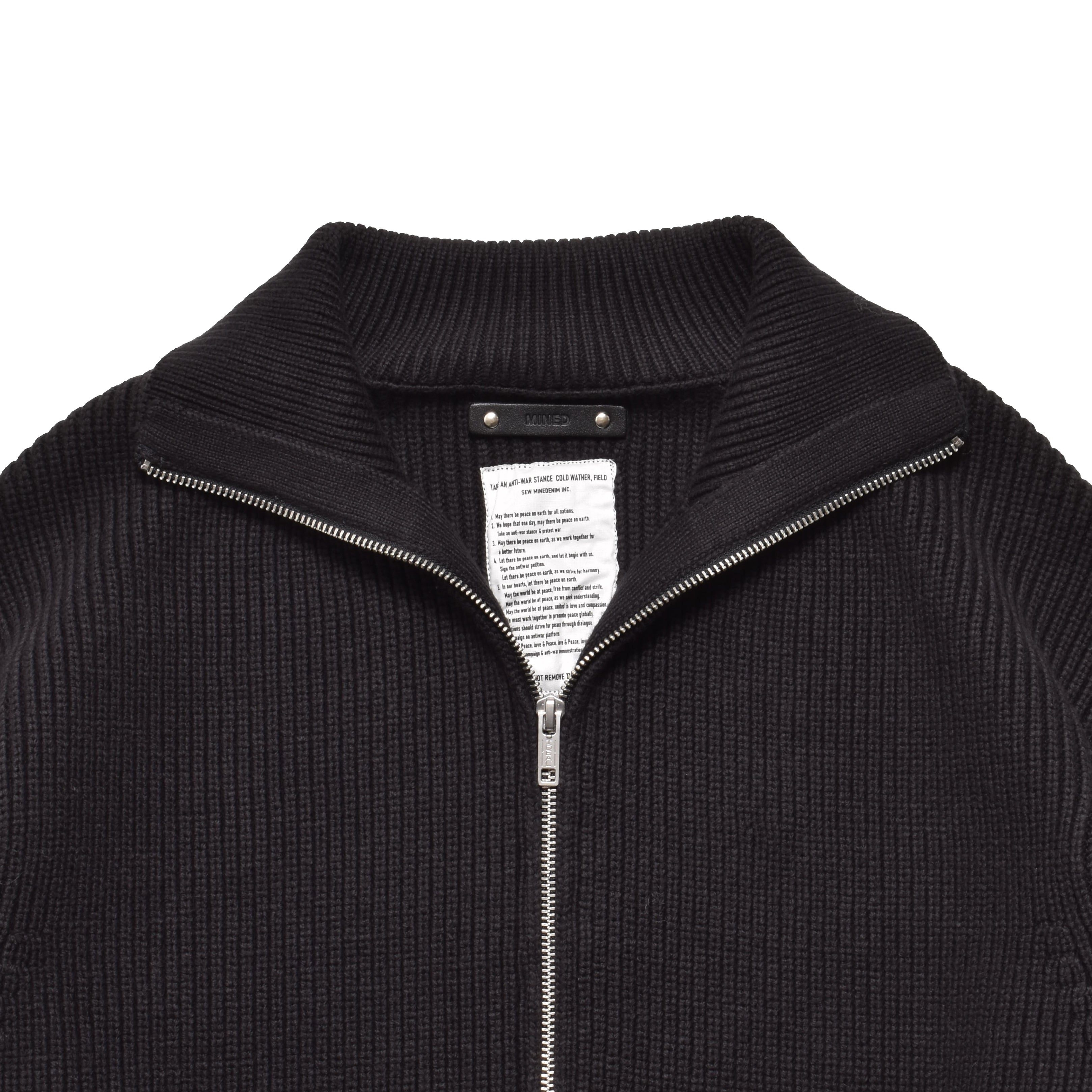 敢えて撚りをかけずコットン本来の柔らかな風合いと光沢を引き出した太番手のニット糸を用い、最大限度目を詰めることで重厚感を演したジップアップトラッカーニットブルゾン