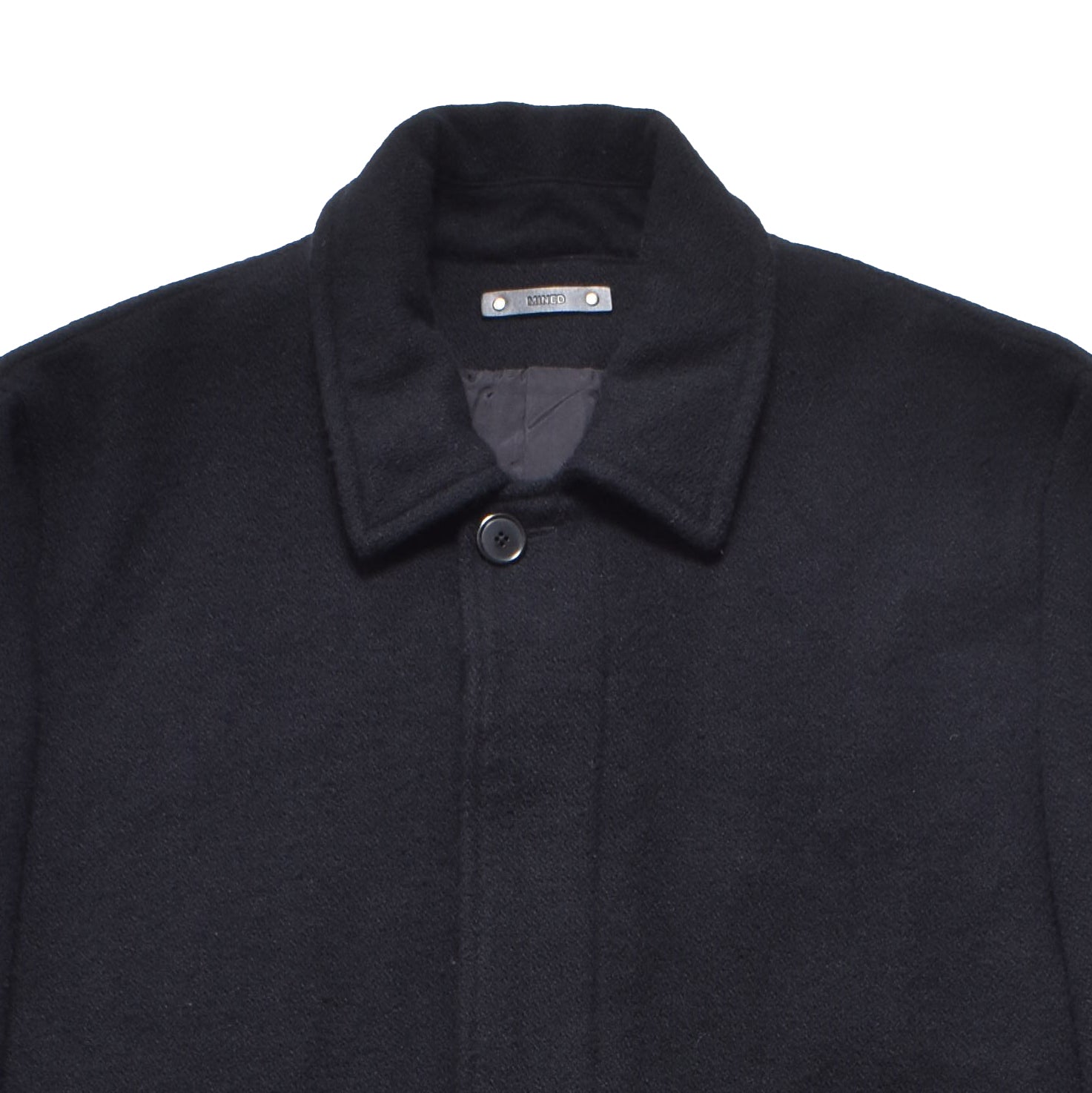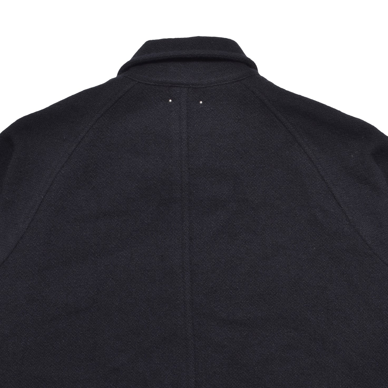 首が当たるパーツには肌触りの良いウール地を採用することで、着心地の良さも兼ね備えているスプリットラグランスリーヴのバルマカンコート。