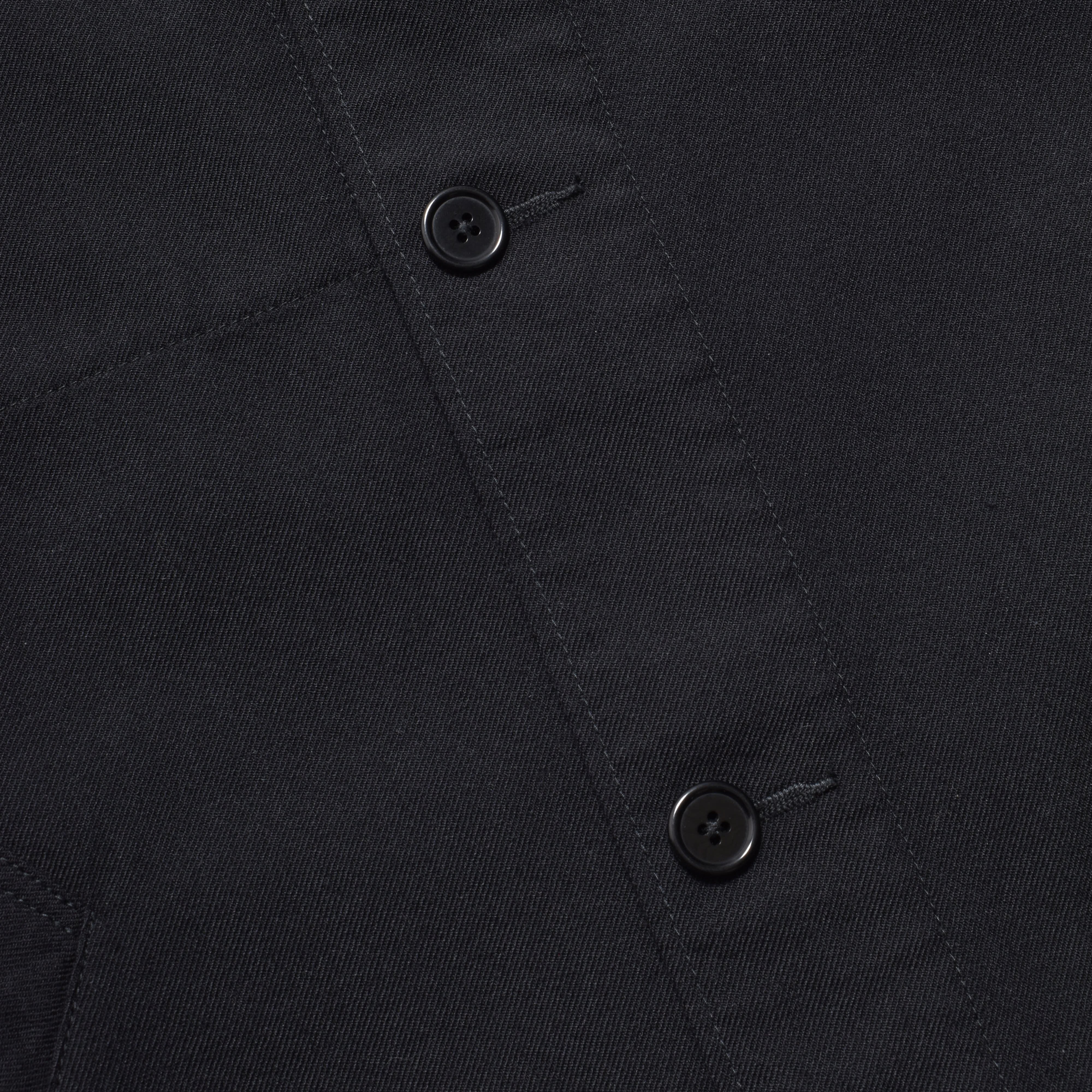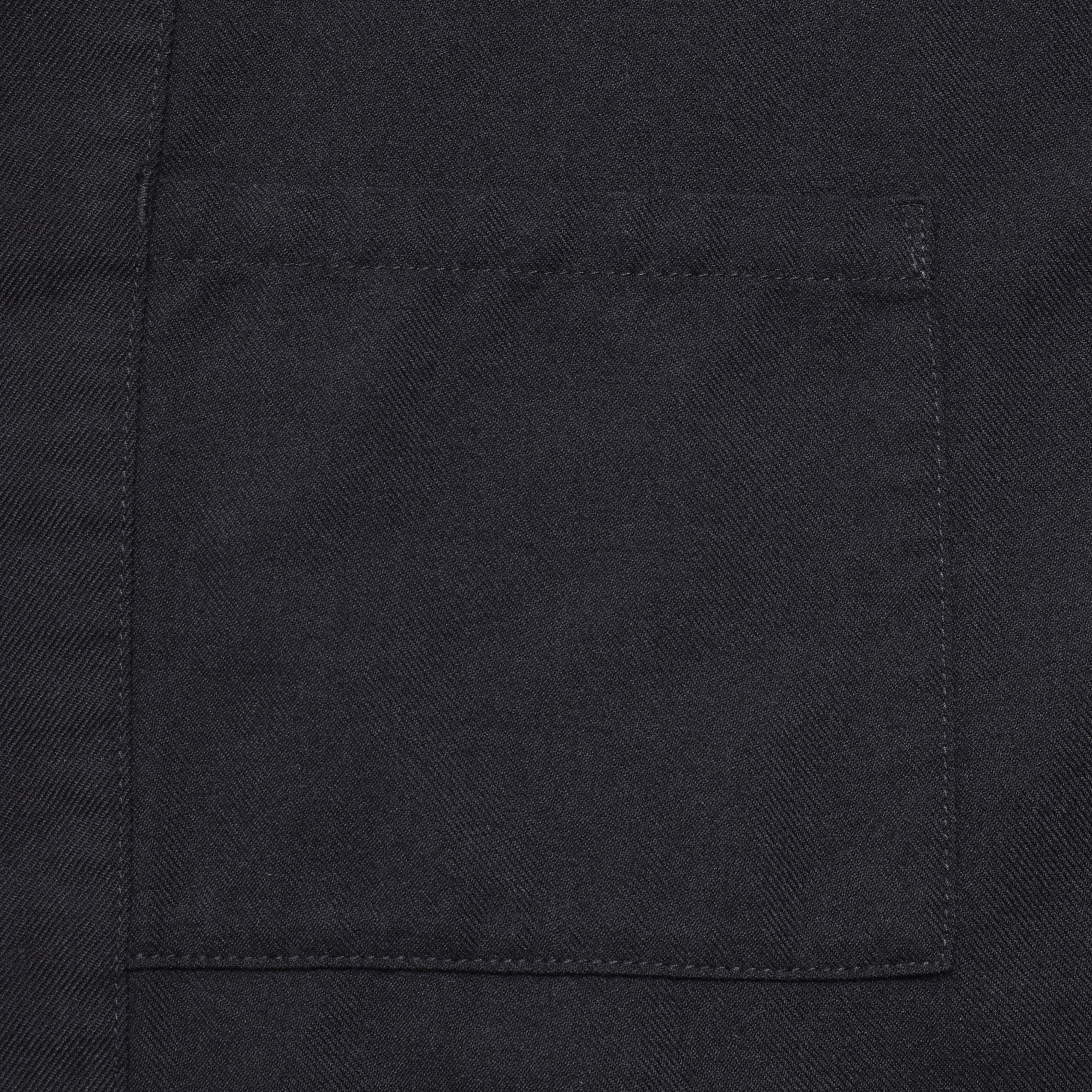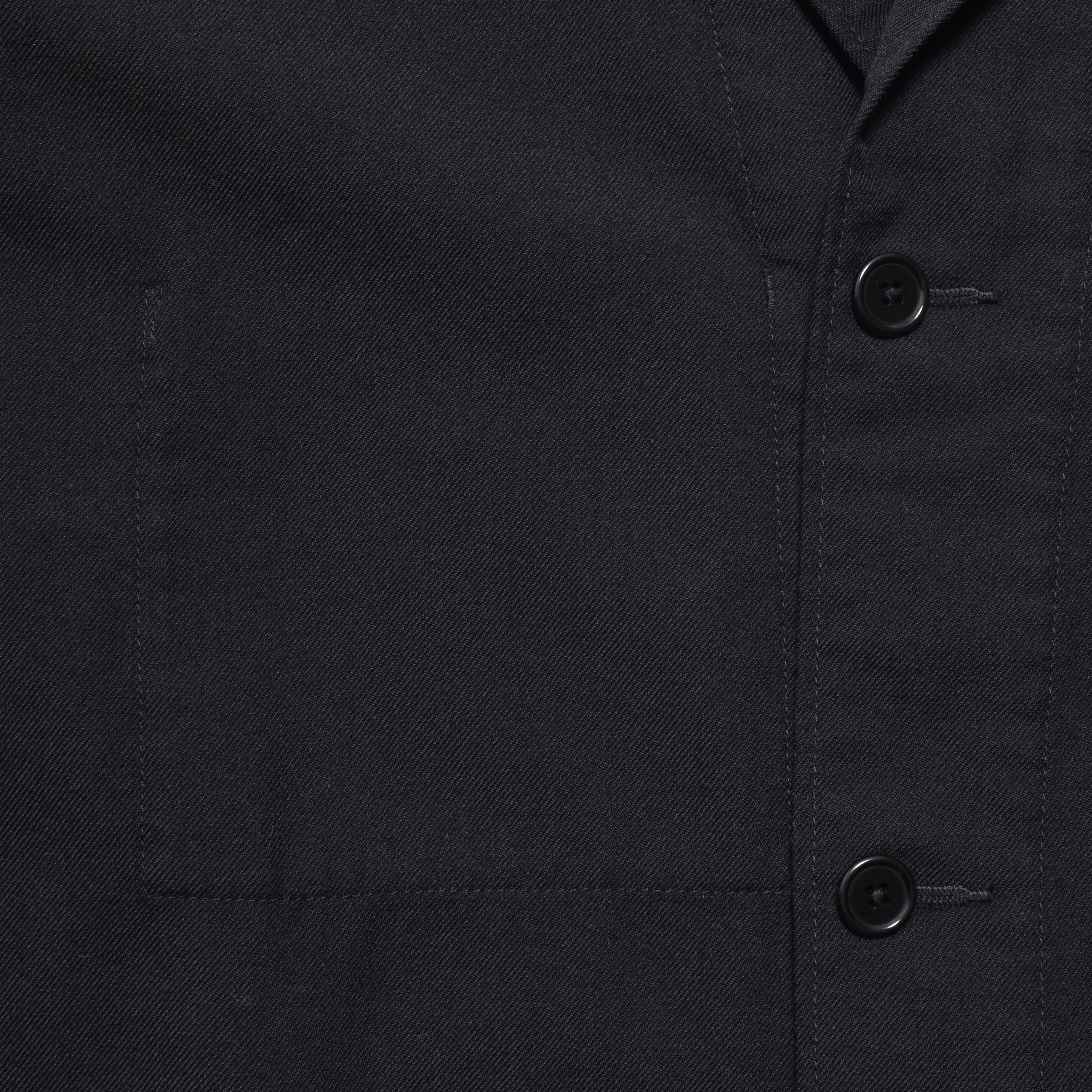 フロントポケットはワークウェアに多いパッチポケットではなく“箱ポケット”に仕様を変更。シルエットを崩さず都会的でミニマルな印象に整えています。