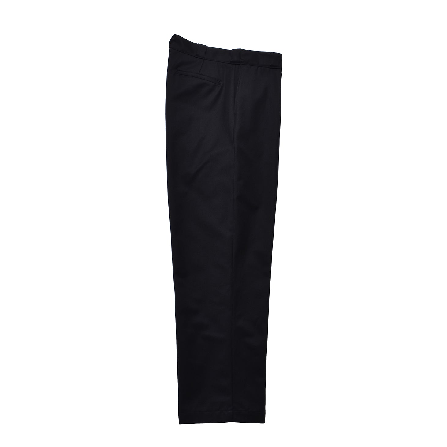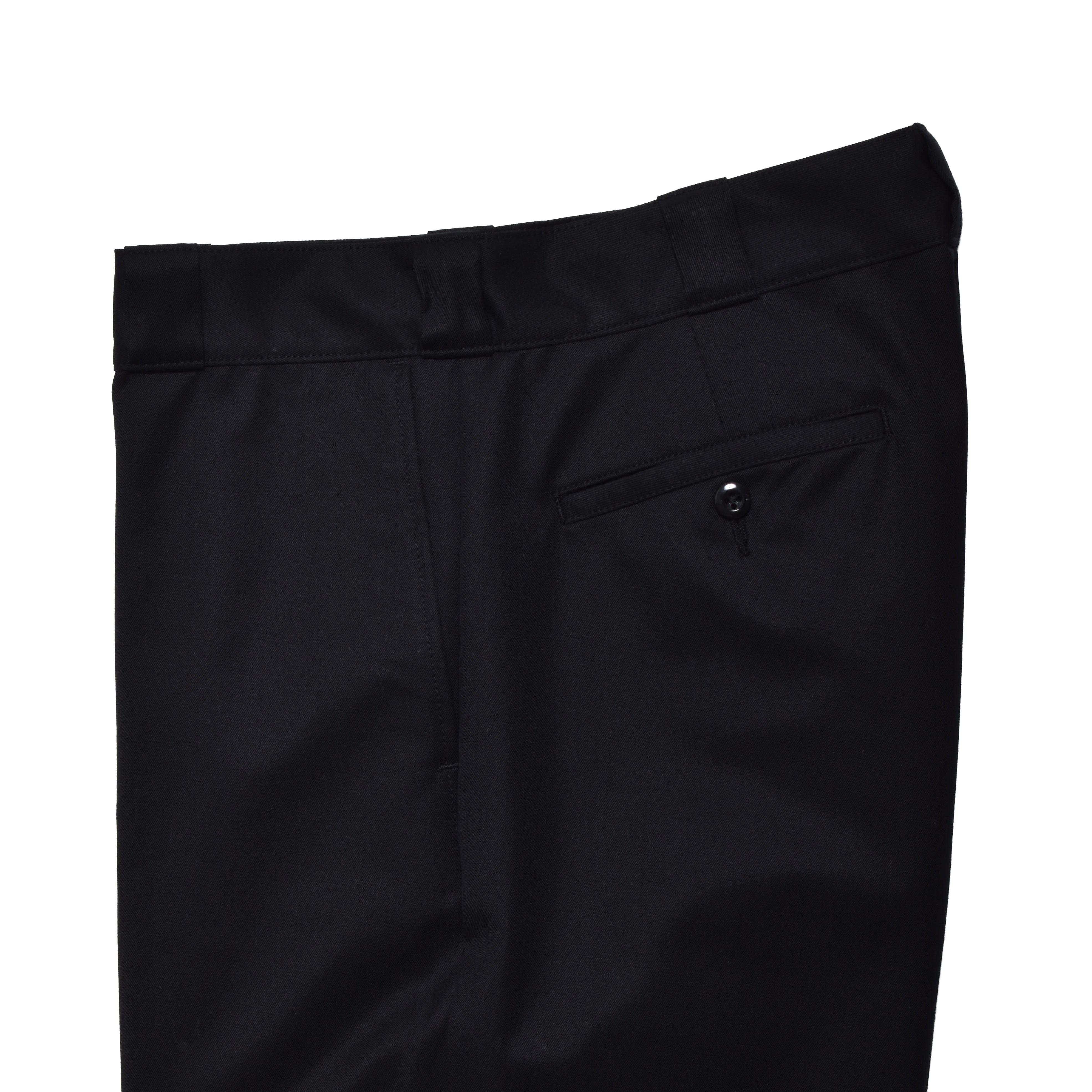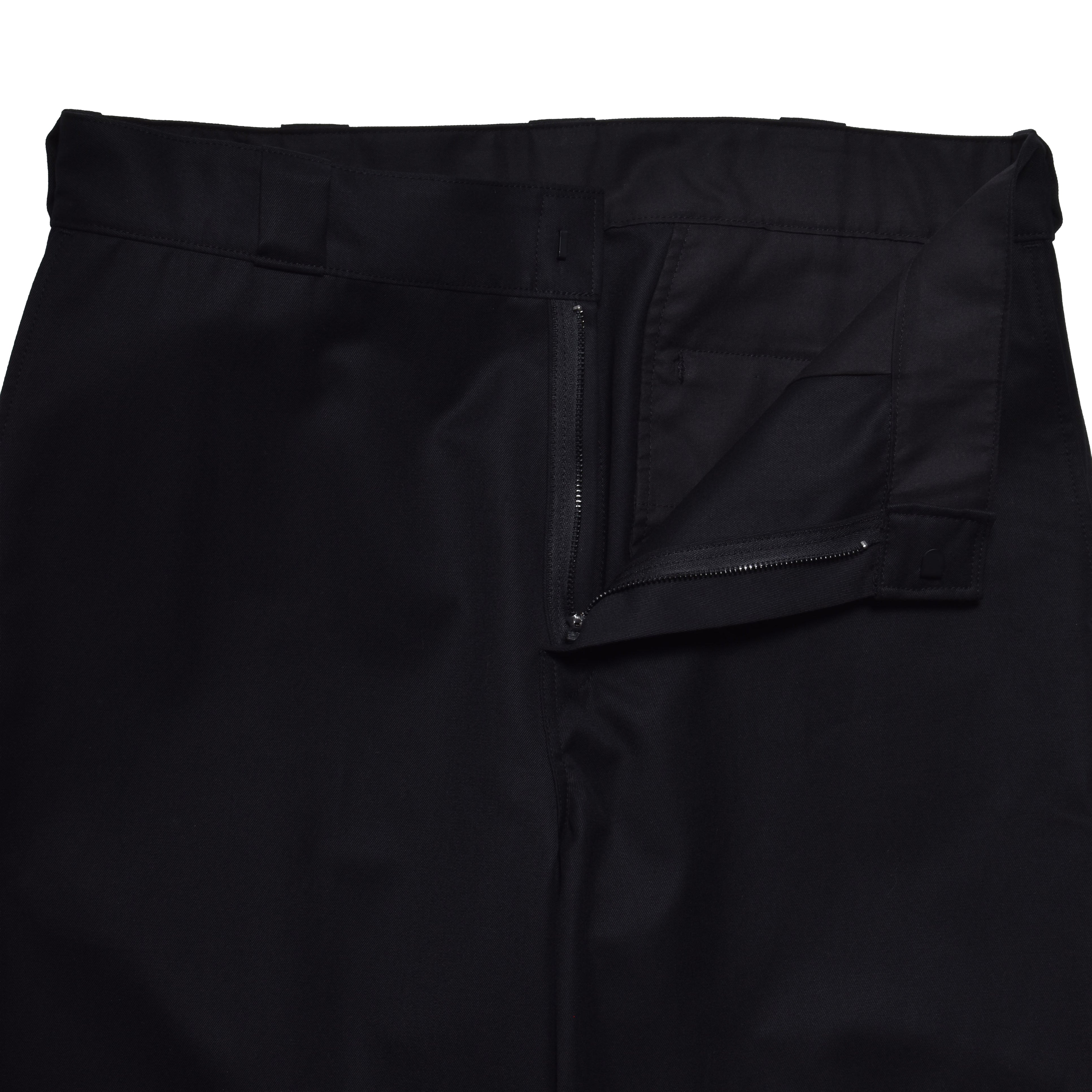 最高級英国服地ブランドDORMEUIL社の「TRENCH」シリーズから、上質なハリとコシを持つブラックウールコットンツイルで仕立てたワークテイストのトラウザーズ。