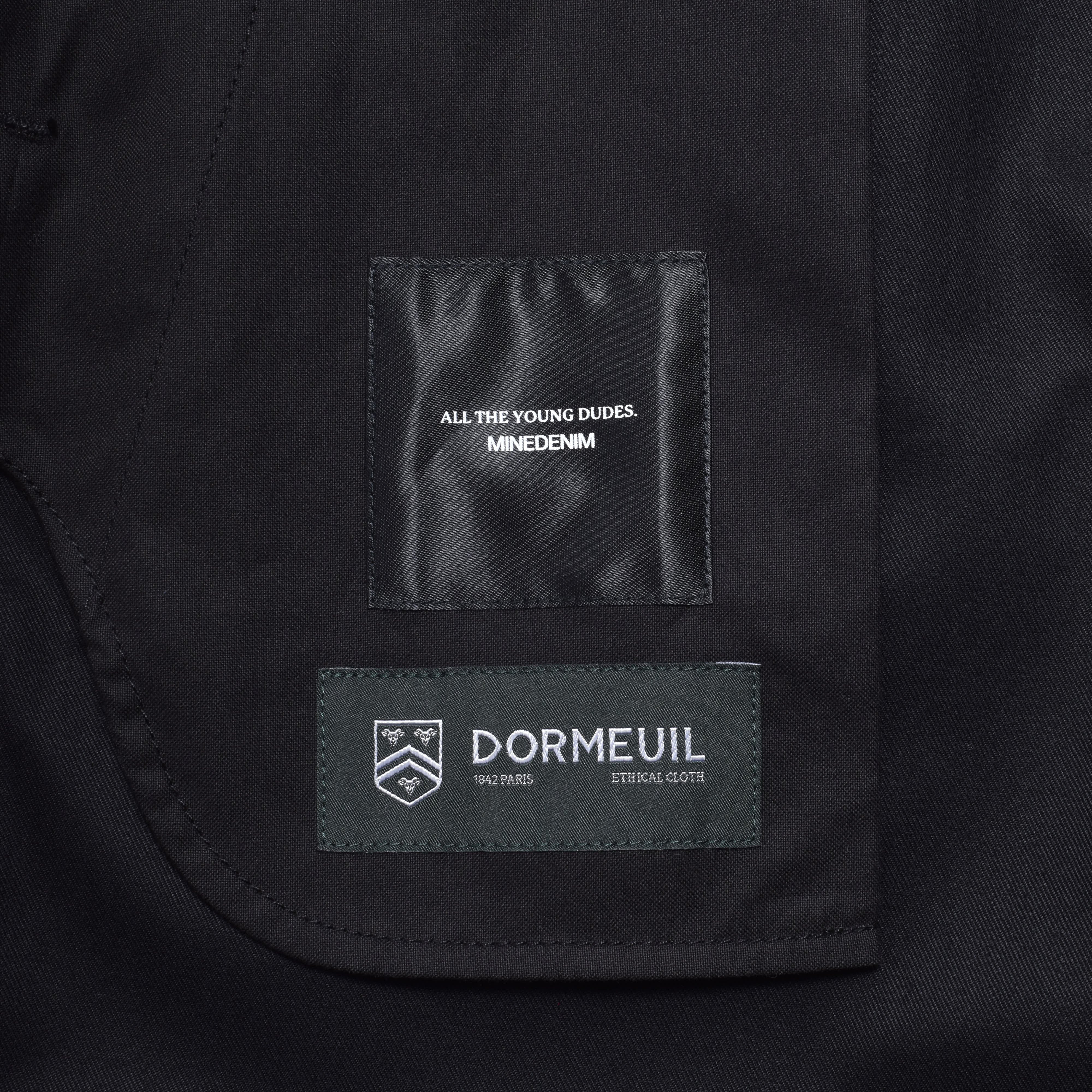 ・しなやかでハリのあるブラックウールコットンツイルを表地に採用