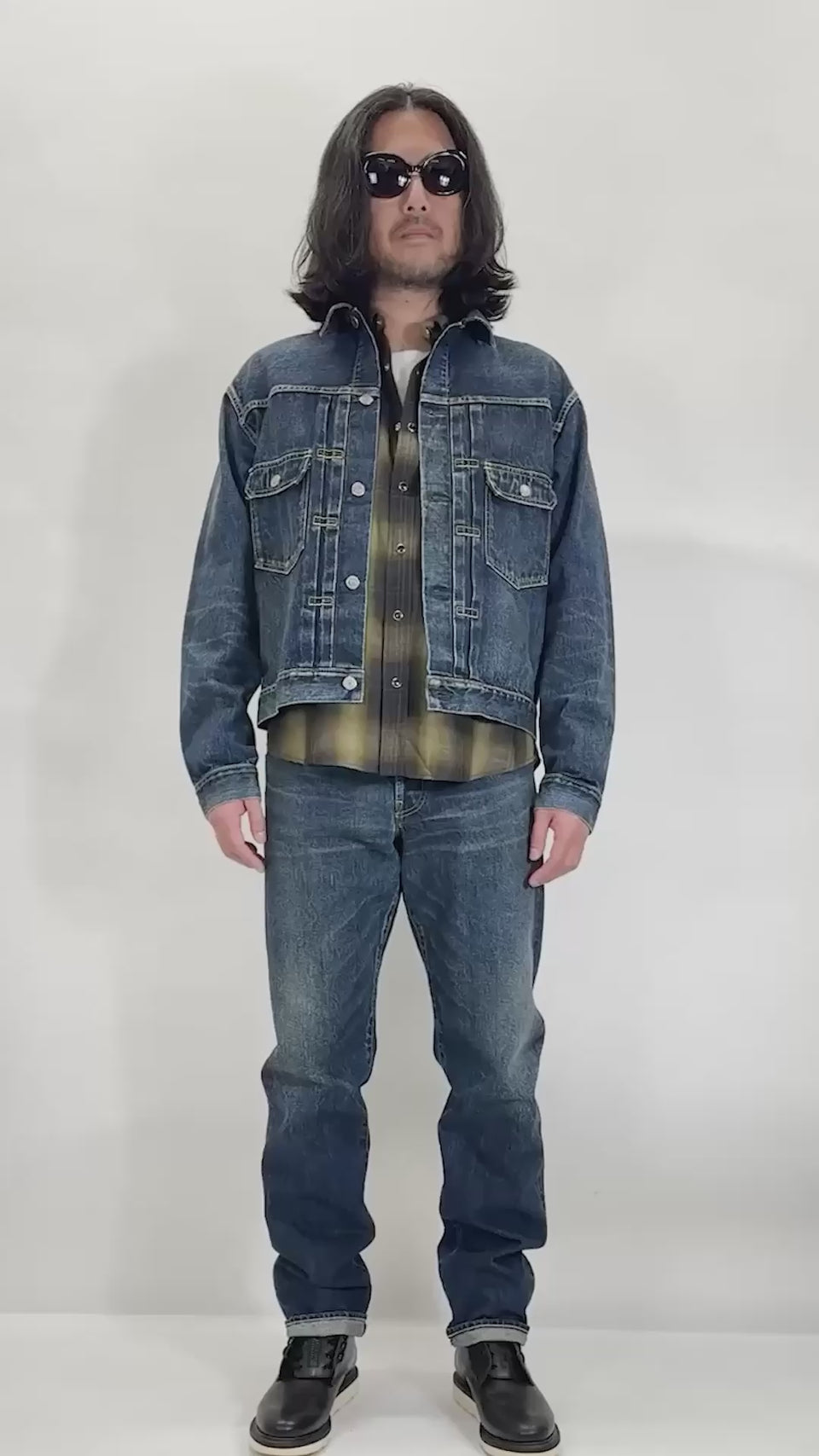 ユーズド加工を施すことで、長年穿き込んだような自然な色落ちと風合いを再現。ヒゲやアタリの表情にもこだわり、リアルなヴィンテージ感を演出。