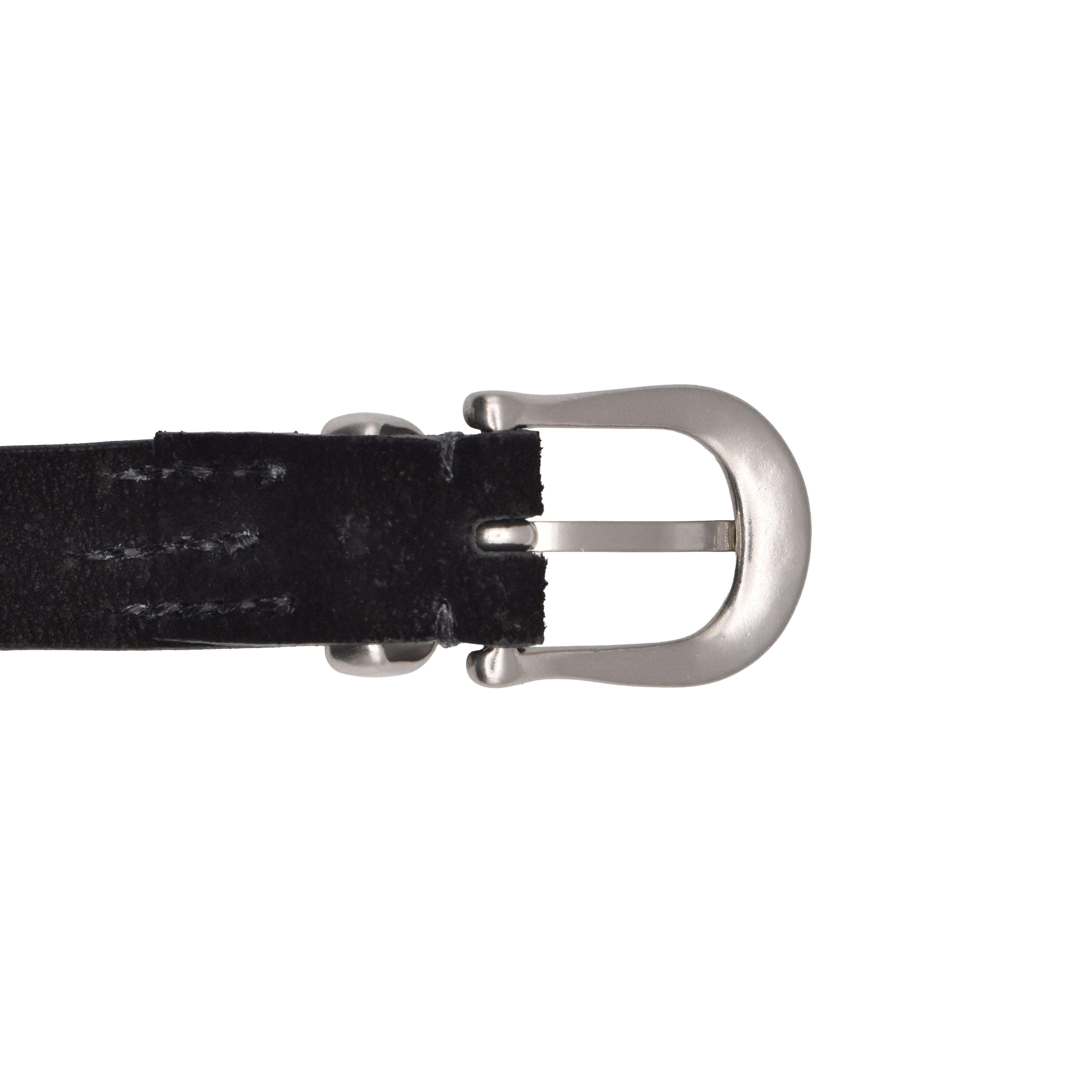 クロム鞣しの後にタンニン鞣しを施すコンビ鞣しによって仕上げた、厚口ベロアレザーを使用したMINEDENIMのレザーベルト。