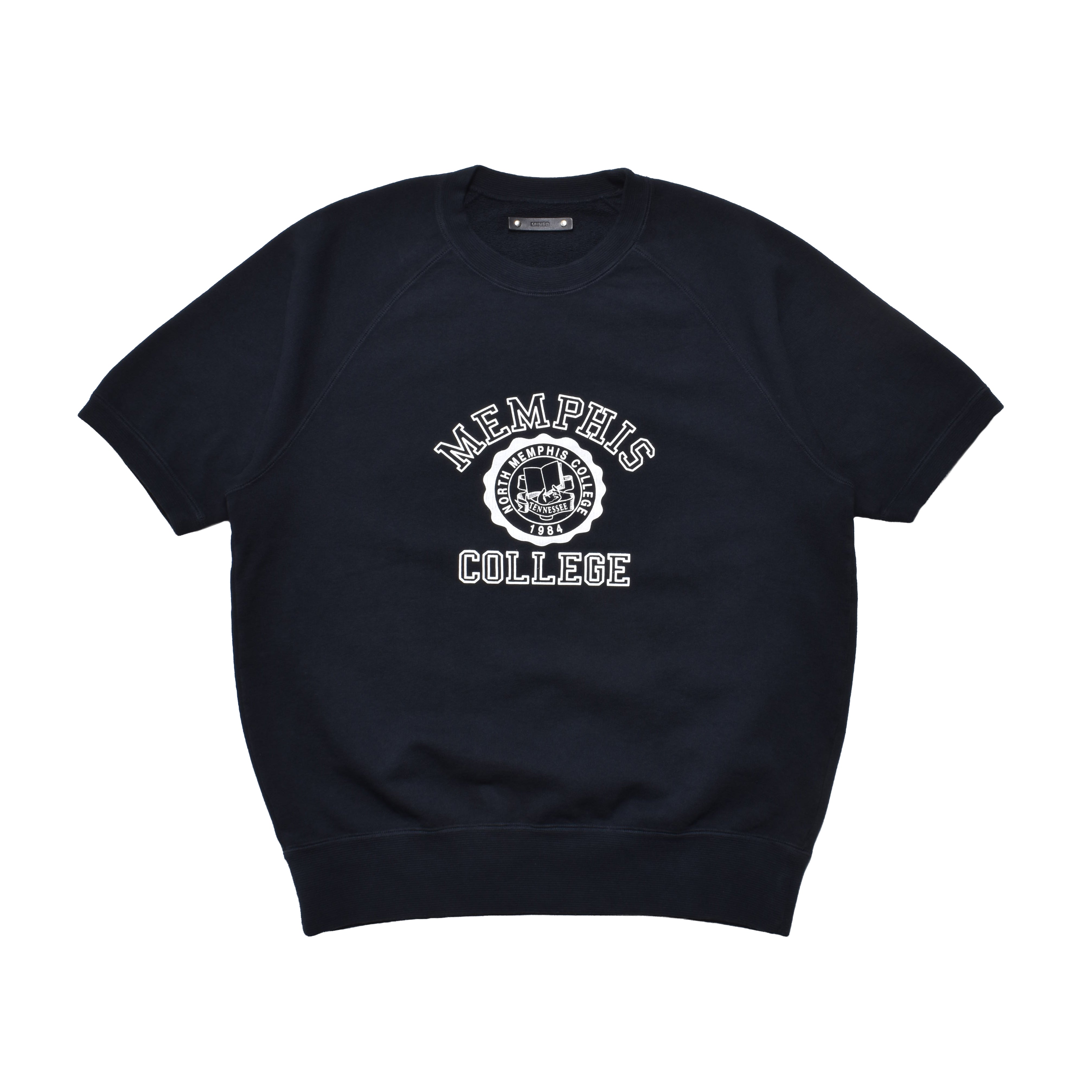 存在しない架空のカレッジロゴを、MINEDENIMらしい視点で再構築したショートスリーブスウェット。