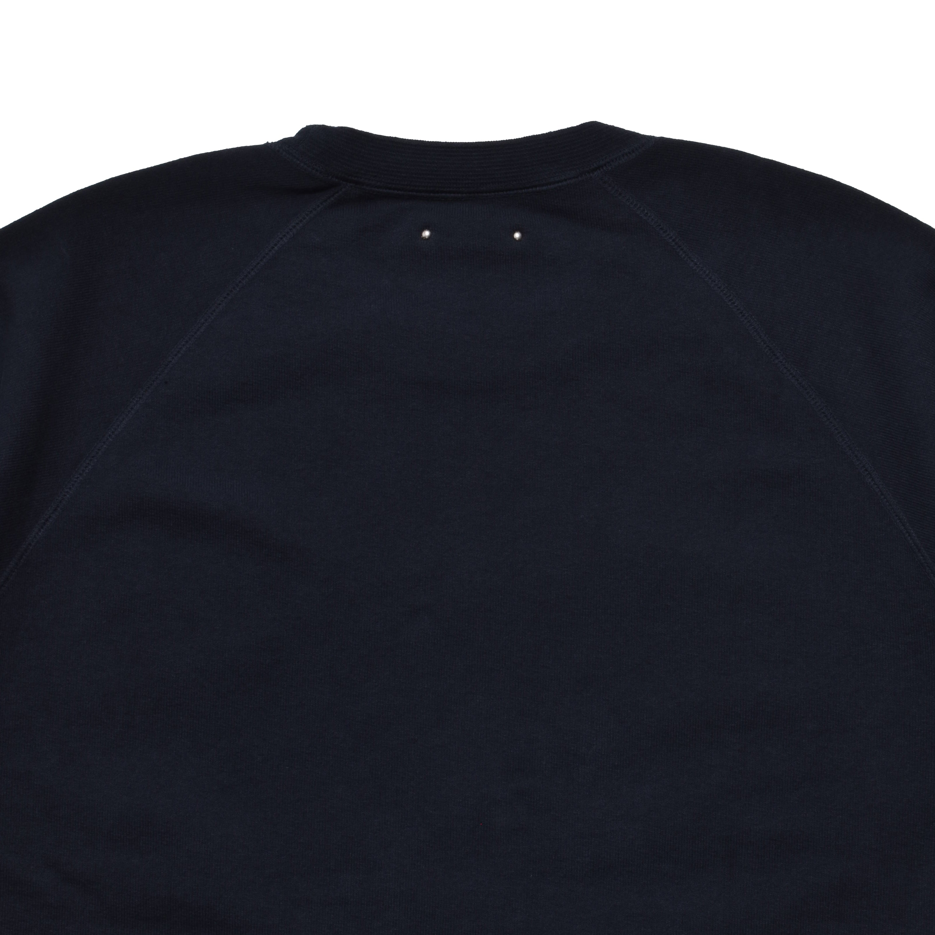 米綿のようにドライタッチな空紡糸を用いたボディは、シャリ感がありながらも柔らかく、軽い着心地。製品染めとビンテージ加工を施すことで、着込んだような褪色や表情豊かな風合いを演出。